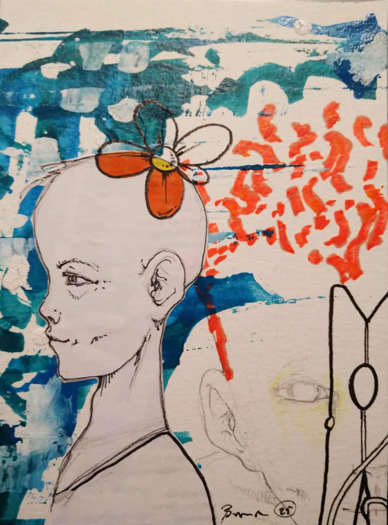 Papirarbejder der kan sendes med posten. Tegning og collage. 20×15 cm. 500 kr. stk.